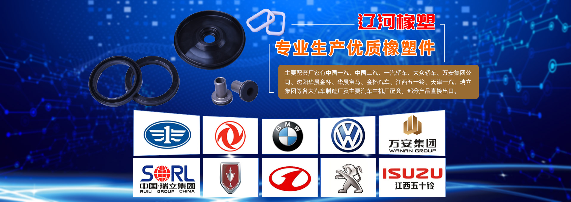 遼河集團主要生產(chǎn)各類汽車三角窗密封條、O形圈、油封、皮膜、皮碗、減震系列等各類橡塑密封件和汽車用橡膠制品,公司銷售網(wǎng)點遍布全國各地,目前已經(jīng)為全國各大汽車制造廠及主要汽車主機廠配套各種橡膠制品。